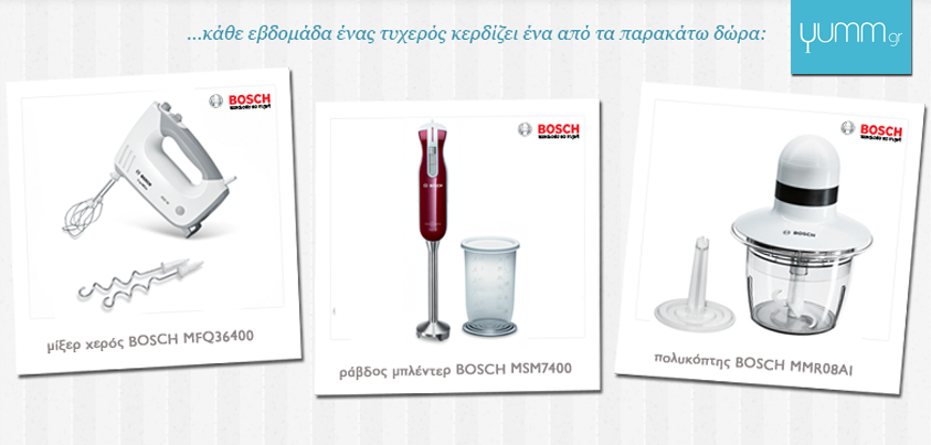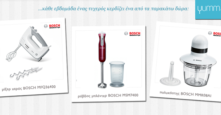 Διαγωνισμός yumm.gr με δώρο ένα μίξερ χειρός Bosch ή μια ράβδο μπλέντερ ή έναν πολυκόπτη