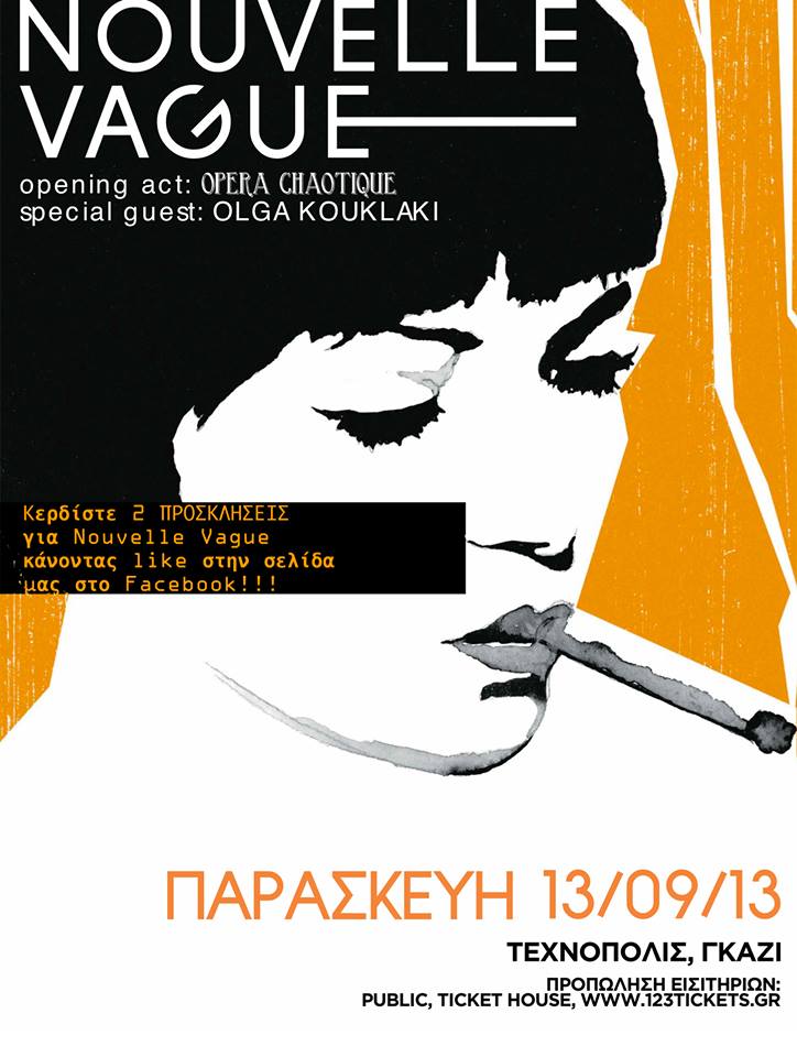 Το zuma communications διοργανώνει διαγωνισμό και σας δίνει τη δυνατότητα να κερδίσετε 2 προσκλήσεις για τους Nouvelle Vague στις 13 Σεπτεμβρίου στην Τεχνόπολη.