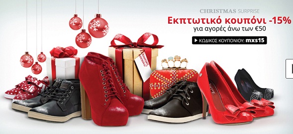 Μπείτε στο Myshoe.gr και πραγματοποιήστε τις αγορές σας, άνω των 50€, μέχρι τη Δευτέρα 7 Ιανουαρίου και χρησιμοποιώντας τον κωδικό mxs15 θα κερδίσετε έκπτωση 15% στις αγορές σας.
