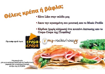 Το my-radioshow γιορτάζει 2 χρόνια λειτουργίας και σας δίνει την δυνατότητα να κερδίσετε χωρίς κλήρωση ένα κουπόνι έκπτωσης από το Crepa-Crepa Γλυφάδας.