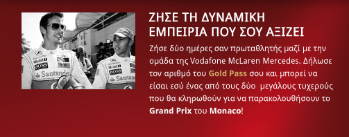 Oι νικητές του διαγωνισμού θα είναι δύο (2) και το έπαθλο είναι ένα ταξίδι στο Μονακό έχοντας την ευκαιρία να ζήσετε ένα Σαββατοκύριακο σαν πρωταθλητής της F1 μαζί με την ομάδα της Vodafone McLaren Mercedes στο Grand Prix του Μονακό που θα διεξαχθεί τον Μάϊο του 2011. Το δώρο συμπεριλαμβάνει αεροπορικά εισιτήρια, μεταφορά από το Παρίσι στο Μονακό, διαμονή σε πολυτελές ξενοδοχείο, παρακολούθηση του αγώνα της F1 από σουίτα VIP. Στο δώρο συμπεριλαμβάνονται και γεύματα καθώς και συμμετοχή σε συναντήσεις με τους οδηγούς της F1. Διευκρινίζεται ότι στο δώρο δεν συμπεριλαμβάνονται προσωπικά έξοδα