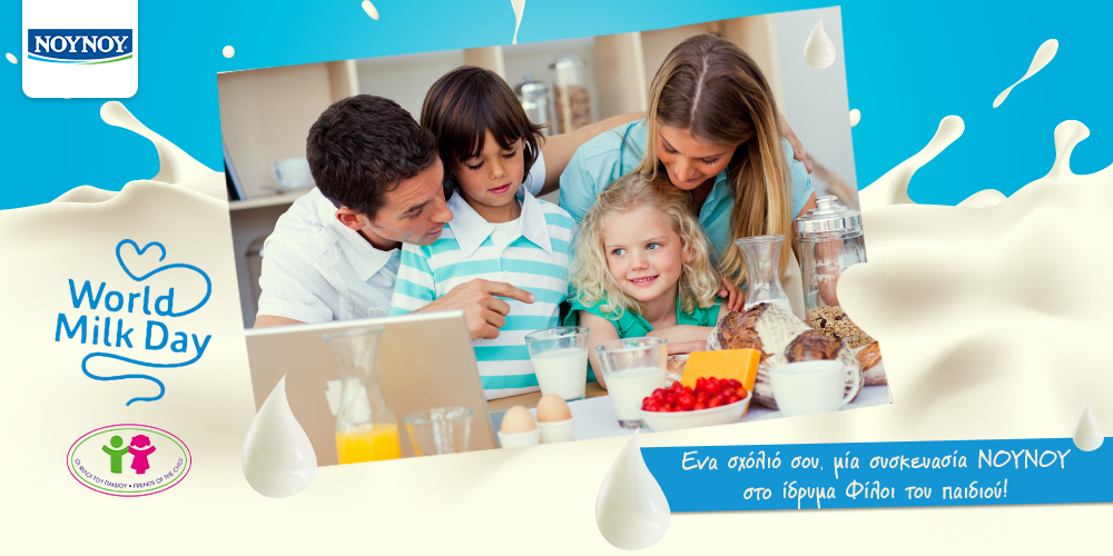 Μοιράσου την αγαπημένη σου οικογενειακή στιγμή με το ΝΟΥΝΟΥ και πάμε να γιορτάσουμε μαζί την Παγκόσμια Ημέρα Γάλακτος, την Κυριακή 1 Ιουνίου! Άφησε το σχόλιό σου μέχρι την Κυριακή 1/6, 23:59 μ.μ. και μοίρασε χαμόγελα! Για κάθε σχόλιο, χαρίζουμε μία συσκευασία ΝΟΥΝΟΥ Συμπυκνωμένο στο Φιλανθρωπικό Σωματείο «Οι Φίλοι του Παιδιού»! Για μια ζωή γεμάτη… υπέροχες στιγμές!