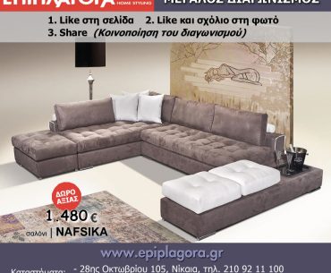 H Επιπλαγορά Home Styling διοργανώνει διαγωνισμό και σας δίνει τη δυνατότητα να κερδίσετε ένα σαλόνι Nafsika, ελληνικής κατασκευής από ξύλο οξιάς με αδιάβροχο ύφασμα, αξίας 1.480€!