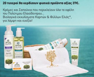 Tα Hondos Center διοργανώνουν διαγωνισμό και δίνουν τη δυνατότητα σε 20 τυχερές που να κερδίσουν από ένα σετ φυσικών προϊόντων Olivia by Papoutsanis!