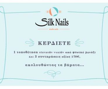To Silk Nails διοργανώνει διαγωνισμό και σας δίνει τη δυνατότητα να κερδίσετε μία τοποθέτηση τεχνητών νυχιών απο φυσικό μετάξι και 3 συντηρήσεις!