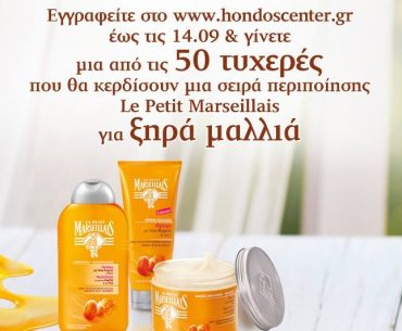 Tα Hondos Center διοργανώνει διαγωνισμό και δίνουν τη δυνατότητα σε 50 τυχερούς να κερδισουν από μία σειρά περιποίησης Le Petit Marseillais για ξηρά μαλλιά!