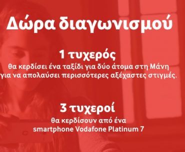 H Vodafone διοργανώνει διαγωνισμό και σας δίνει τη δυνατότητα να κερδίσετε 2 διανυκτερεύσεις αξίας έως 500€ στη Μεσσηνιακή Μάνη και 3 κινητά τηλέφωνα Vodafone Smart Platinum 7!