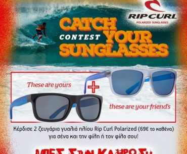 H σελίδα Rip Curl Sunglasses διοργανώνει διαγωνισμό και σας δίνει τη δυνατότητα να κερδίσετε 2 ζευγάρια μοδάτα Rip Curl Polarized (69€ το καθένα) για να μοιρασείτε με την/ον φίλη/ο σας!