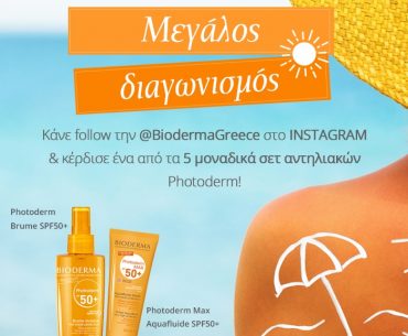 H Bioderma Greece διοργανώνει διαγωνισμό και σας δίνει τη δυνατότητα να κερδίσετε 5 μοναδικά σετ αντηλιακών Photoderm για το καλοκαίρι!