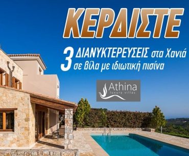 To newsbeast.gr διοργανώνει διαγωνισμό και σας δίνει τη δυνατότητα να κερδίσετε ένα 4ήμερο (3 διανυκτερεύσεις) στο πολυτελές συγκρότημα «Athina Luxury Villas» με ιδιωτική πισίνα στα Χανιά Κρήτης!