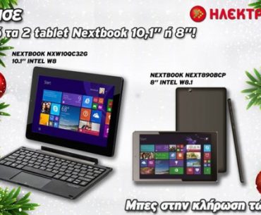 Η ΗΛΕΚΤΡΟΝΙΚΗ διοργανώνει διαγωνισμό και σας δίνει τη δυνατότητα να κερδίσετε 2 tablet Nextbook, με οθόνη αφής 10.1 ή 8 ιντσών και τετραπύρηνο επεξεργαστή.