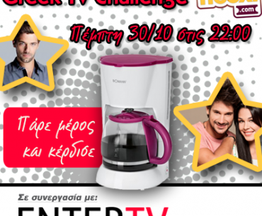 Παίξτε στο πρώτο GREEK TV QUIZ CHALLENGE που διοργανώνει το flooxi.com σε συνεργασία με το EnterTV.gr απαντήστε σωστά στις περισσότερες ερωτήσεις και κερδίστε μια απίστευτα πρακτική καφετιέρα φίλτρου.