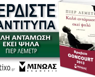 Το diastixo.gr σε συνεργασία με τις εκδόσεις Μίνωας, προσφέρει στους αναγνώστες του 3 αντίτυπα από το μυθιστόρημα του Πιερ Λεμέτρ, ΚΑΛΗ ΑΝΤΑΜΩΣΗ ΕΚΕΙ ΨΗΛΑ.