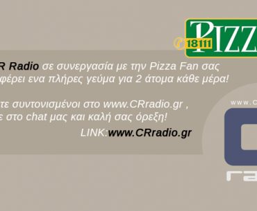 Το CRradio.gr διοργανώνει διαγωνισμό και σας δίνει τη δυνατότητα να κερδίσετε 1 γεύμα για 2 άτομα από την Pizza Fan! Το γεύμα περιλαμβάνει δύο (2) πίτσες των 8 τεμαχίων και ένα Choco KRATS ή μία Μπουγάτσα KRATS.