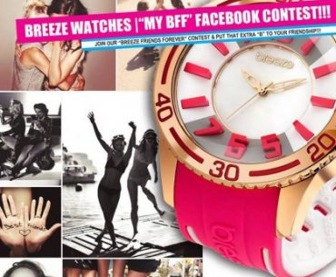 BREEZE WATCHES “My BFF” Facebook Contest! Join our “Breeze Friends Forever” Contest & put that extra “B” to your friendship! Δύο τυχερές νικήτριες, και από μία φίλη τους, θα κάνουν δικό τους από ένα ολοκαίνουργιο ρολόι BREEZE!