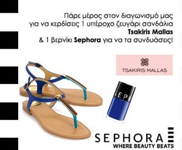 Η σελίδα My Sephora Greece διοργανώνει διαγωνισμό και σας δίνει τη δυνατότητα να κερδίσετε ένα υπέροχο ζευγάρι σανδάλια Tsakiris Mallas και βερνίκι νυχιών Sephora.