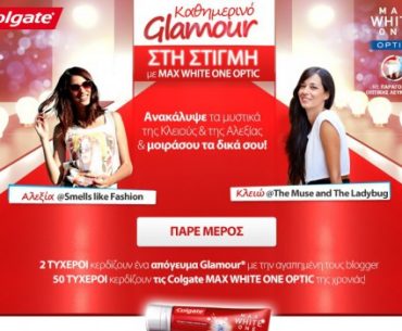 Η Colgate Greeceδιοργανώνει διαγωνισμό και δίνει τη δυνατότητα σε 2 τυχερές νικήτριες (αποκλειστικά γυναίκες) να κερδίσουν ένα απόγευμα glamour στο ξενοδοχείο Hilton στην Αθήνα. Επίσης, θα κερδίσουν τις οδοντόκρεμες MAX WHITE ONE Optic της χρονιάς (6 συσκευασίες). Στις συγκεκριμένες νικήτριες θα καλυφθούν και μέχρι 100€ έξοδα μετακίνησης, με την επίδειξη των σχετικών παραστατικών! 50 επίσης νικητές θα κερδίσουν τις οδοντόκρεμες MAX WHITE ONE Optic της χρονιάς (6 συσκευασίες).