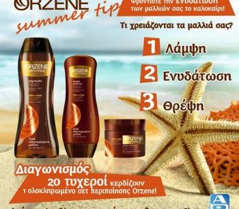 Τα ΑΒ Βασιλόπουλος διοργανώνουν διαγωνισμό και σας δίνουν τη δυνατότητα να κερδίσετε 20 σετ περιποίησης Orzene για ξηρά μαλλιά. Το σετ περιλαμβάνει 1 τεμ. Σαμπουάν Orzene Μπύρας για ξηρά και ταλαιπωρημένα μαλλιά, 1 τεμ. Κρέμα Μαλλιών Orzene Μπύρας για ξηρά και ταλαιπωρημένα μαλλιά και 1 τεμ. Μάσκα Μαλλιών Orzene Μπύρας για ξηρά και ταλαιπωρημένα μαλλιά.