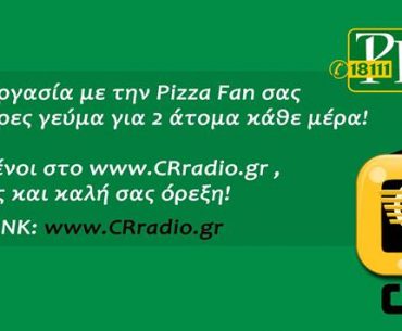 To CRradio.gr διοργανώνει διαγωνισμό και σας δίνει τη δυνατότητα να κερδίσετε 1 γεύμα για 2 άτομα από την Pizza Fan: 2 πίτσες των 8 τεμαχίων και ένα Choco KRATS ή μία Μπουγάτσα KRATS.