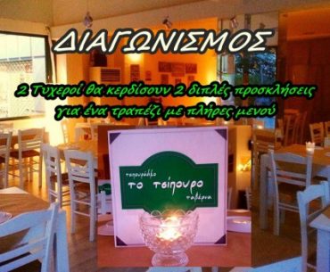 Το τσιπουράδικο «Το Τσίπουρο» σε συνεργασία με το fthinopolis.gr προσφέρει σε δύο νικητές, από ένα τραπέζι με πλήρες μενού για 2 άτομα (δύο πιάτα με ορεκτικά, μία σαλάτα και δύο κύρια πιάτα) και κρασί ή τσίπουρο για όποιο βράδυ εσείς επιλέξετε.