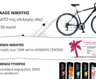Οι καραμέλες Zero αποφάσισαν να κάνουν ένα διαδραστικό διαγωνισμό με τίτλο «Τι… τύπος ενήλικα πιστεύεις ότι είσαι;»! Ένας μεγάλος νικητής θα κερδίσει ένα ποδήλατο της επιλογής του, αξίας 250 euro για συναρπαστικές βόλτες, οι 4 επόμενοι νικητές θα κερδίσουν δωροεπιταγές των 100€ απ’τα HONDOS CENTER και οι 10 επόμενοι τυχεροί θα κερδίσουν από 20 κουτάκια καραμέλες ZERO διαφόρων γεύσεων!