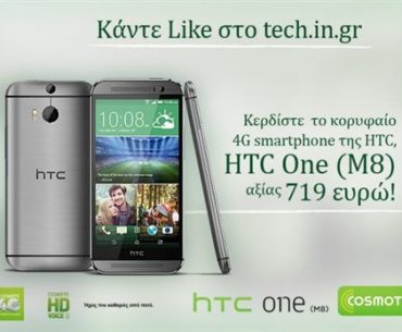Η COSMOTE προσφέρει σε έναν τυχερό/-ρή επισκέπτη του tech.in.gr, το HTC One (M8), το κορυφαίο smartphone της HTC που αξιοποιεί το ταχύτερο δίκτυο κινητής τηλεφωνίας 4G που αναπτύσσει η εταιρεία με εντατικούς ρυθμούς ανά την Ελλάδα αλλά και το HD Voice για κλήσεις με κρυστάλλινο ήχο.