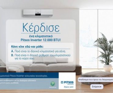 Η σελίδα Οικιακές Συσκευές Pitsos διοργανώνει διαγωνισμό και σας δίνει τη δυνατότητα να κερδίσετε 1 κλιματιστικό Pitsos 12.000 btu (εσωτερική μονάδα: P1ZAI1250W / εξωτερική μονάδα: P1ZAO1250W).