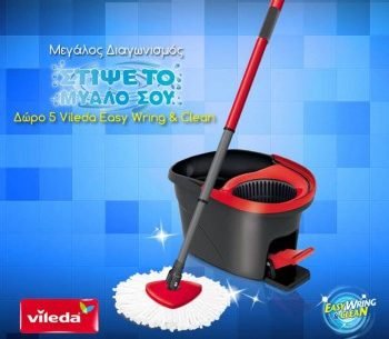 Η σελίδα Vileda Greece διοργανώνει διαγωνισμό και δίνει τη δυνατότητα σε 5 τυχερούς να κερδίσουν από ένα σύστημα σφουγγαρίσματος Easy Wring & Clean.