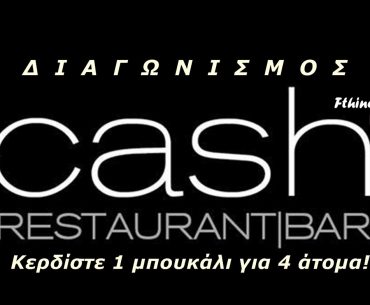 To Cash, το καλύτερο Restaurant – Bar των Βορείων Προαστείων σε συνεργασία με το Fthinopolis.gr προσφέρει σε έναν μοναδικό νικητή, 1 μπουκάλι για 4 άτομα στο club του Cash, για την Παρασκευή 06/06/2014.