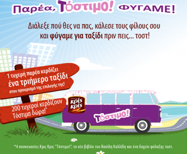 Η σελίδα Κρις Κρις διοργανώνει διαγωνισμό και δίνει τη δυνατότητα σε 1 τυχερή παρέα να κερδίσει ένα τριήμερο ταξίδι στον προορισμό της επιλογής της και σε 200 τυχερούς να κερδίσουν Τόστιμα δώρα!