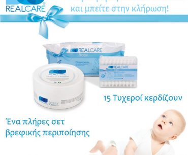 Το beautymylife.gr διοργανώνει διαγωνισμό και σας δίνει τη δυνατότητα να κερδίσετε προϊόντα Real Care! 15 τυχερές μαμάδες θα κερδίσουν από ένα σετ προϊόντων το οποίο θα περιλαμβάνει τα εξής. 1 τεμάχιο nappy cream 150ml, 1 τεμ. μωρομάντηλα 72 τεμαχίων, 1 τεμ. μπατονέτες ασφαλείας 50 τεμαχίων.