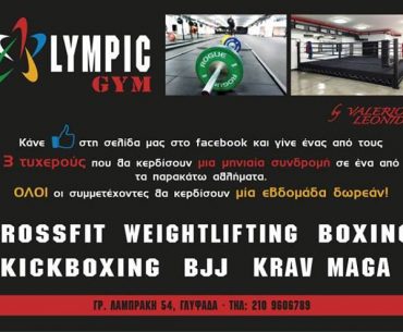 Το olympicgym.gr διοργανώνει διαγωνισμό και δίνει τη δυνατότητα σε 3 τυχερούς να κερδίσουν από μία μηνιαία συνδρομή αξίας 60 ευρώ σε ένα από τα παρακάτω αθλήματα: crossfit, weightlifting, boxing, kickboxing, BJJ, Krav Maga.