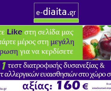 Το e-diaita.gr διοργανώνει διαγωνισμό και σας δίνει τη δυνατότητα να κερδίσετε ένα τεστ διατροφικής δυσανεξίας και ένα τεστ αλλεργικών ευαισθησιών στο χώρο σας!