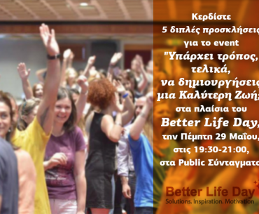 Το mednutrition.gr διοργανώνει διαγωνισμό και σας δίνει τη δυνατότητα να κερδίσετε 5 διπλές προσκλήσεις για το Better Life Day pre-event!