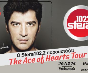 Ο Sfera 102,2 παρουσιάζει τον Σάκη Ρουβά στην “The Ace of Hearts tour”. Το μεγαλύτερο μουσικό υπερθέαμα της χρονιάς, ξεκινά από την Αθήνα το Σάββατο 26 Απριλίου, στο κλειστό γήπεδο Tae Kwon do. Το cheapis.gr σας προσφέρει εισιτήριο εισόδου, με επιλογή ζώνης, από 8€/ το άτομο. (αξίας 15€ – έκπτωση 46,67%).