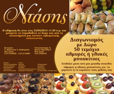 Τα Αρτοζαχαροπλαστεία Ντάσης – ntasis.gr διοργανώνουν διαγωνισμό και σας δίνουν τη δυνατότητα να κερδίσετε 50 τεμ. αλμυρές ή γλυκές μπουκίτσες!