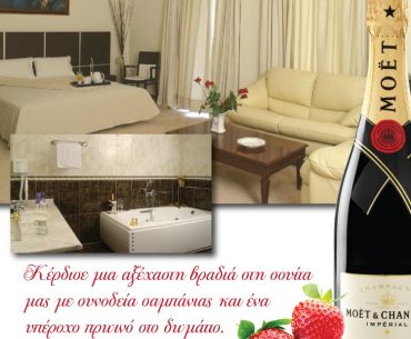 Το bluesea.com.gr διοργανώνει διαγωνισμό και σας δίνει τη δυνατότητα να κερδίσετε μία διανυκτέρευση σε σουίτα με συνοδεία σαμπάνιας και πρωινό αξίας 150 ευρώ.