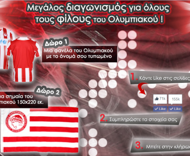 Η σελίδα ΚΟΚΚΙΝΟΣ ΘΕΟΣ 1925 διοργανώνει διαγωνισμό και σας δίνει τη δυνατότητα να κερδίσετε μια σημαία και μια φανέλα του Ολυμπιακού.