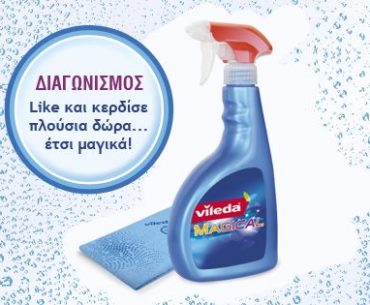 Η σελίδα Vileda Greece διοργανώνει διαγωνισμό και δίνει τη δυνατότητα σε 1 τυχερό να κερδίσει δώρα αξίας 300€ και σε 10 επιπλέον νικητές να κερδίσουν ο καθένας δώρα αξίας 50€.