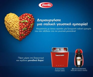 Η σελίδα «Barilla Greece» διοργανώνει το διαγωνισμό «Δημιουργείστε μία γευστική ιταλική εμπειρία» και σας δίνει τη δυνατότητα να μπείτε στην κλήρωση για 28 πολυκαφετιέρες Dolce Gusto και για 2 πλυντήρια πιάτων SMEG.