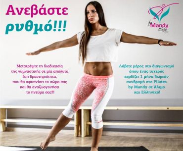 Το mednutrition.gr διοργανώνει διαγωνισμό και σας δίνει τη δυνατότητα να ανεβάσετε ρυθμό κερδίζοντας 1 μήνα δωρεάν pilates στα Pilates by Mandy! Μετατρέψτε τη διαδικασία της γυμναστικής σε μία απόλυτα fun δραστηριότητα, που θα αφυπνίσει το σώμα σας και θα αναζωογονήσει το πνεύμα σας!