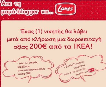Η σελίδα Lanes Health διοργανώνει διαγωνισμό και δίνει τη δυνατότητα σε 1 τυχερό να κερδίσει μια δωροεπιταγή 200 ευρώ για αγορές από τα καταστήματα ΙΚΕΑ, σε 2 τυχερούς να κερδίσουν από μία δωροεπιταγή αξίας 60 ευρώ από τα πολυκαταστήματα Attica και σε 7 ακόμα, από 3 συσκευασίες προϊόντων Lanes.