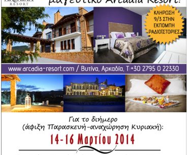 To Sin Radio και το Arcadia Resort προσφέρουν ένα υπέροχο διήμερο(14-16 Μαρτίου) σε ένα τυχερό ζευγάρι!