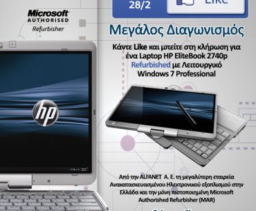 Η Alfanet SA διοργανώνει διαγωνισμό και σας δίνει τη δυνατότητα να κερδίσετε ένα Refurbished Hp EliteBook 2740p!