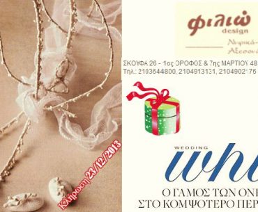 Το White Wedding Περιοδικό Γάμου διοργανώνει διαγωνισμό και σας δίνει τη δυνατότητα να κερδίσετε ένα σετ χειροποίητα στέφανα αξίας 300 ευρώ, από την Φιλώ Design στο Κολωνάκι.