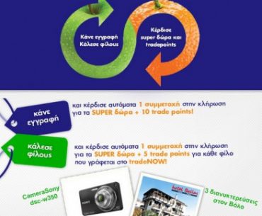 Το tradenow.gr διοργανώνει διαγωνισμό και σας δίνει τη δυνατότητα να κερδίσετε μια ψηφιακή φωτογραφική SONY CyberShot 14 Megapixel και 3 διανυκτερεύσεις στο Βόλο.