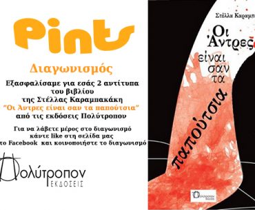 Το Pints.gr διοργανώνει διαγωνισμό και σας δίνει τη δυνατότητα να κερδίσετε 2 βιβλία από τις εκδόσεις Πολύτροπον! Το βιβλίο είναι ιδανική συντροφιά. Εξασφαλίσαμε για εσάς 2 αντίτυπα του βιβλίου της Στέλλας Καραμπακάκη “Οι Άντρες είναι σαν τα παπούτσια” από τις εκδόσεις Πολύτροπον.