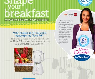 Η σελίδα tetrapakhellas.gr διοργανώνει διαγωνισμό και σας δίνει τη δυνατότητα να κερδίσετε 10 καλάθια με νοστιμιές για το πρωινό, φτιαγμένο από την Marisa Churchill, μια ποδιά μαγειρικής με το λογότυπο Τetra Pak και 5 Blender Moulinex LM3001.
