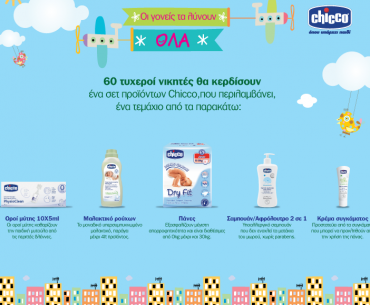 Το Chicco διοργανώνει διαγωνισμό και σας δίνει τη δυνατότητα να κερδίσετε 60 σετ προϊόντων της Εταιρείας. Πιο συγκεκριμένα, θα κερδίσετε τα εξής προϊόντα: