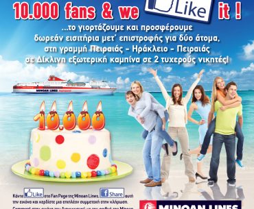 Η minoan lines διοργανώνει διαγωνισμό και σας δίνει τη δυνατότητα να κερδίσετε εισιτήρια μετ’ επιστροφής Πειραιάς Ηράκλειο για δύο άτομα σε δίκλινη εξωτερική σε 2 τυχερούς νικητές!